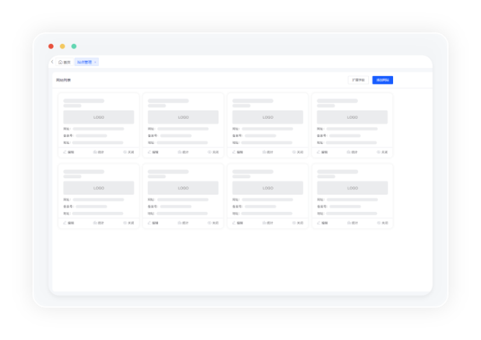 系统为客户提供了网站管理功能,可以将自己的官网或者推广网站部署到系统中,系统还提供多个模板(研发中)可供选择,可快速建立起企业的宣传网站。