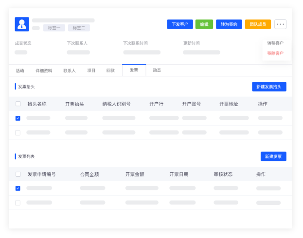 每一笔回款都有开票需求,可以关联客户信息快速创建发票审批。