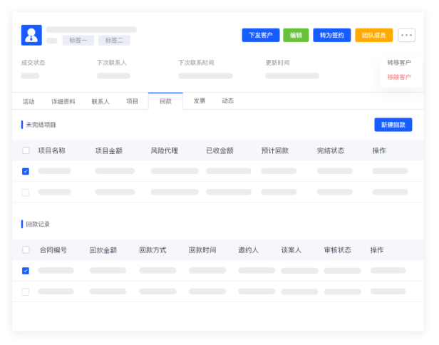 记录客户的每一笔回款,客户续签有依据,销售业绩有体现,保证每一笔收入都有迹可循。