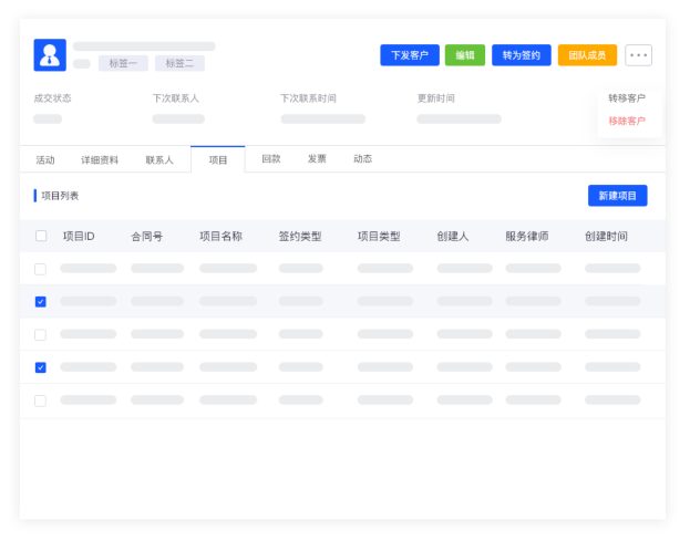 客户签约后会根据合同为其创建相应的项目,项目内包含客户所有服务过项目,服务人员会根据服务流程为客户提供服务