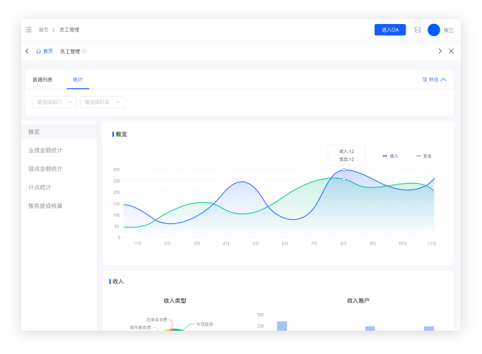 统计企业所有的收支情况、业绩完成情况、计点获取情况,分析每年各个时间段的情况,为管理者决策提供一定的依据。