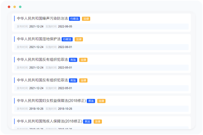 系统可以查询目前生效的绝大多数法律法规,让你可以快速对其进行检索需要的法条。
